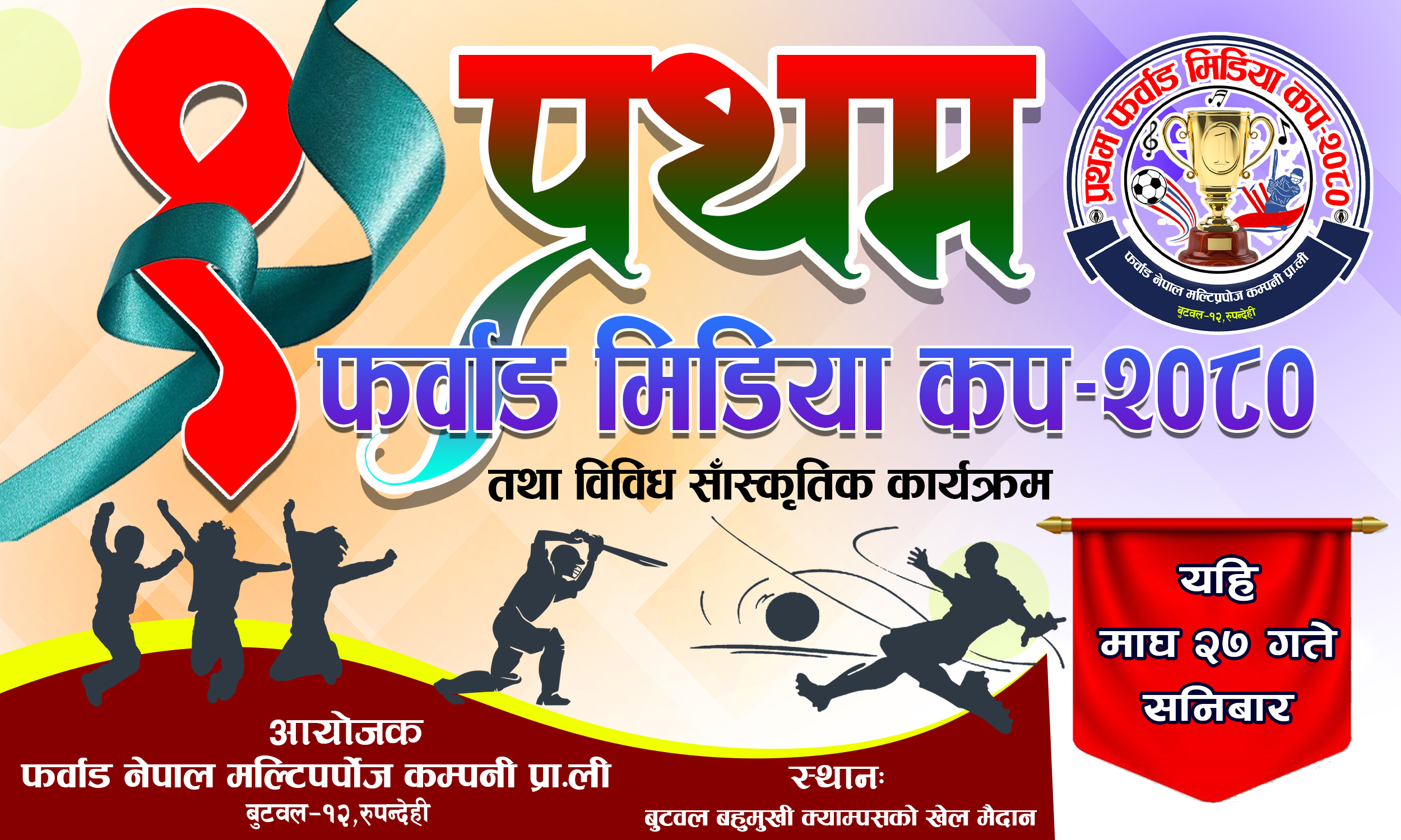 अध्यक्ष भुसालका अनुसार प्रथम फर्वाड मिडिया कप-२०८० अन्तर्गत क फर्वाड मिडिया टि टेन (10) क्रिकेट कप र फर्वाड फुट्सल कपको आयोजना गरिएको छ । भने कार्यक्रमको मुख्य प्रायोजकको रुपमा ग्यास्ट्रो सेन्टर बुटवल प्रा.लि रहने छ ।